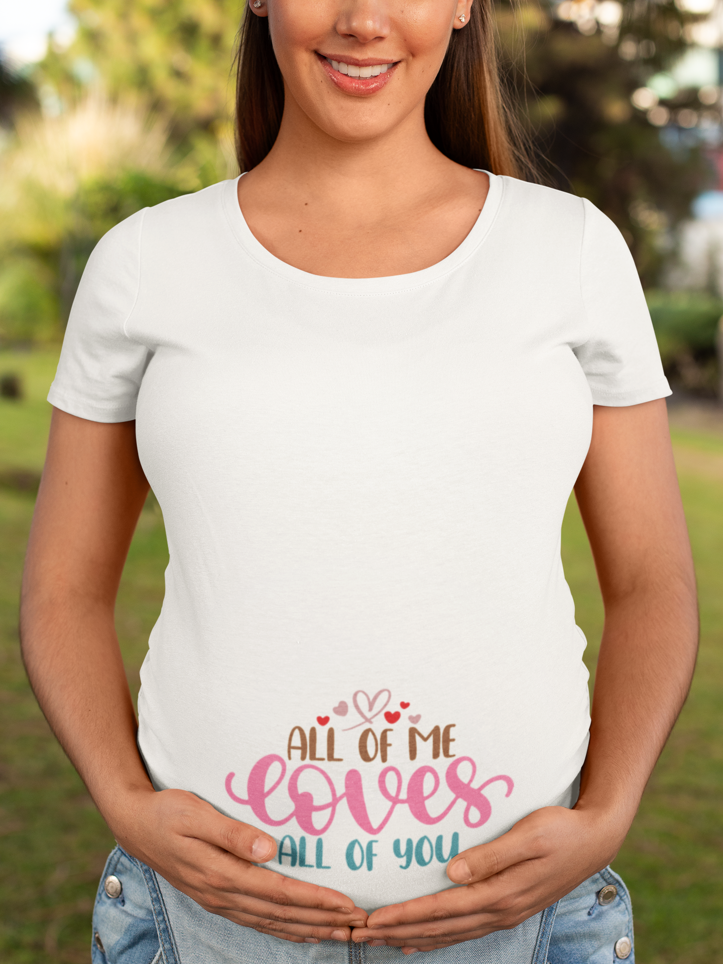 All of Me Loves All of You Maternity T Shirt Dress – Heartfelt Pregnancy Tee white - Dheeth By Nature “All of Me Loves All of You” M...
