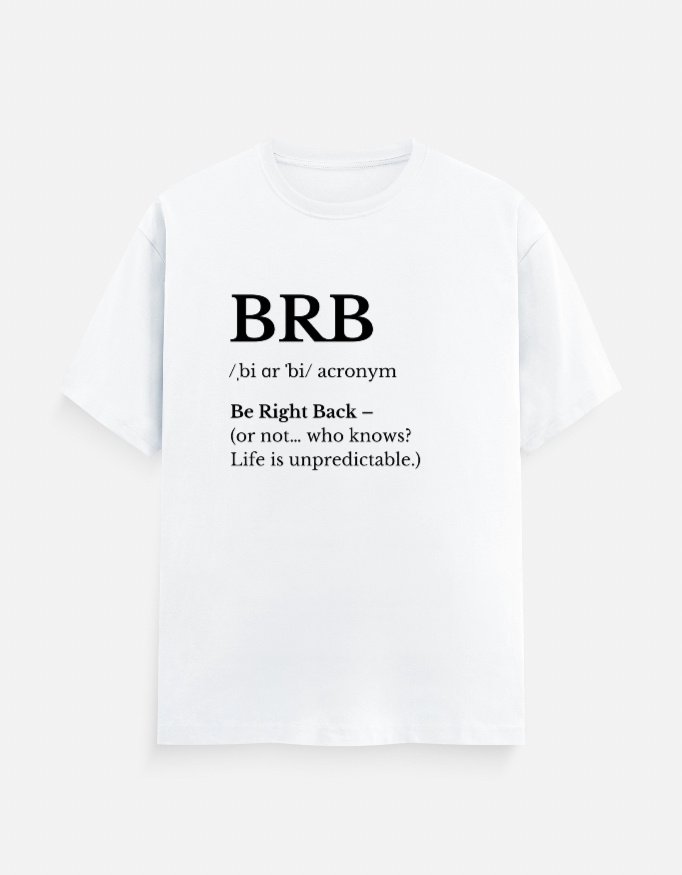 When life gets too much, sometimes you just gotta say, “BRB.” This black graphic T-shirt is perfect for those casual days when you want to keep it short, simple, and stylish. Made from soft, breathable fabric, it’s designed for comfort while keeping your vibe unapologetically chill. Pair it with jeans or joggers and own your laid-back look.