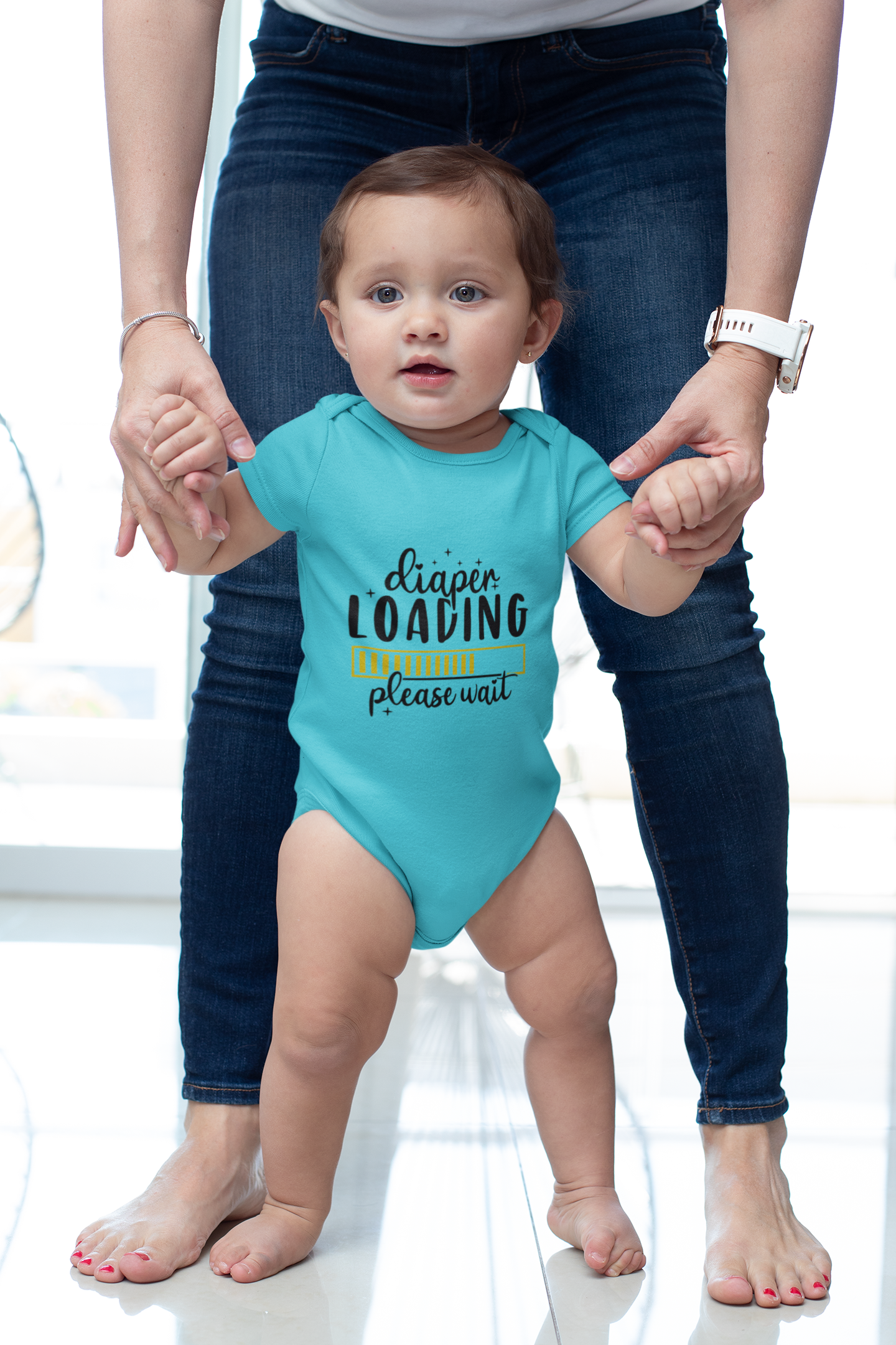 For those moments when it’s about to go down — literally. This hilarious “Diaper Loading” design is perfect for the baby who gives no warning. Made from soft 100% combed cotton (180 GSM) for day-long comfort.