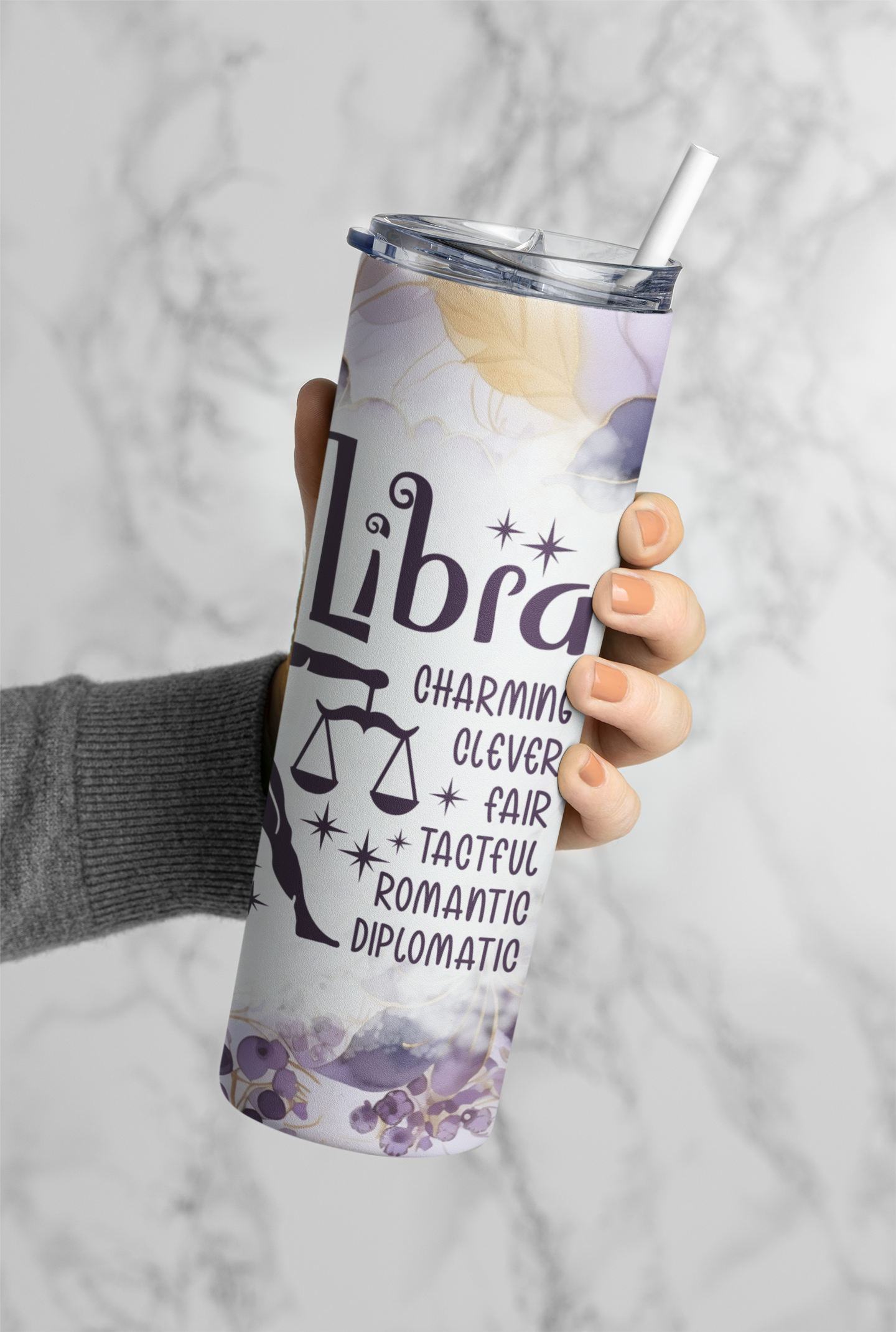 Perfect as a personal indulgence or a gift for the Libra in your life, this tumbler embodies the Libra traits of elegance, harmony, and sustainability, making it a must-have accessory for those who value grace and balance.