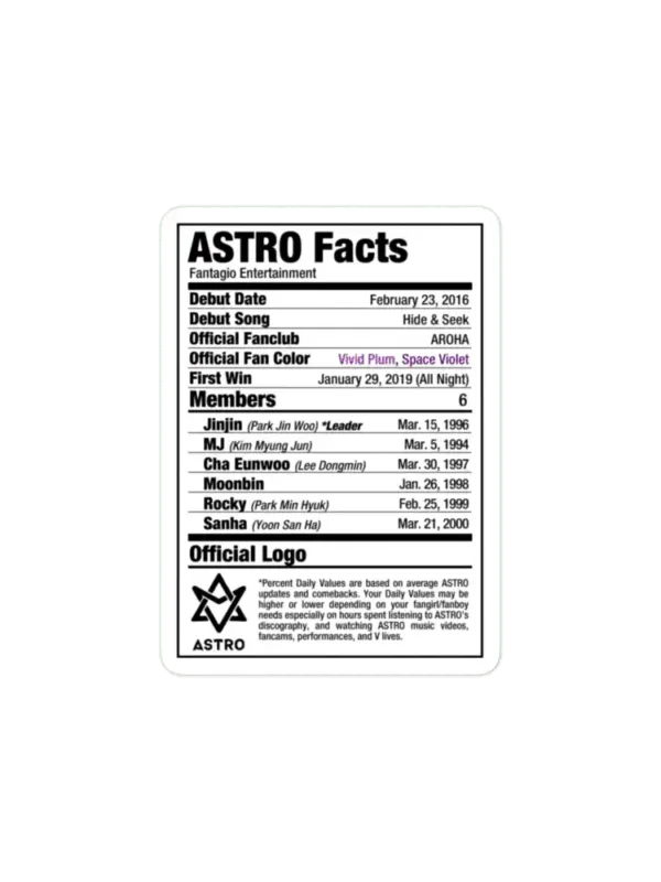 ASTRO Kpop Nutritional Facts Sticker